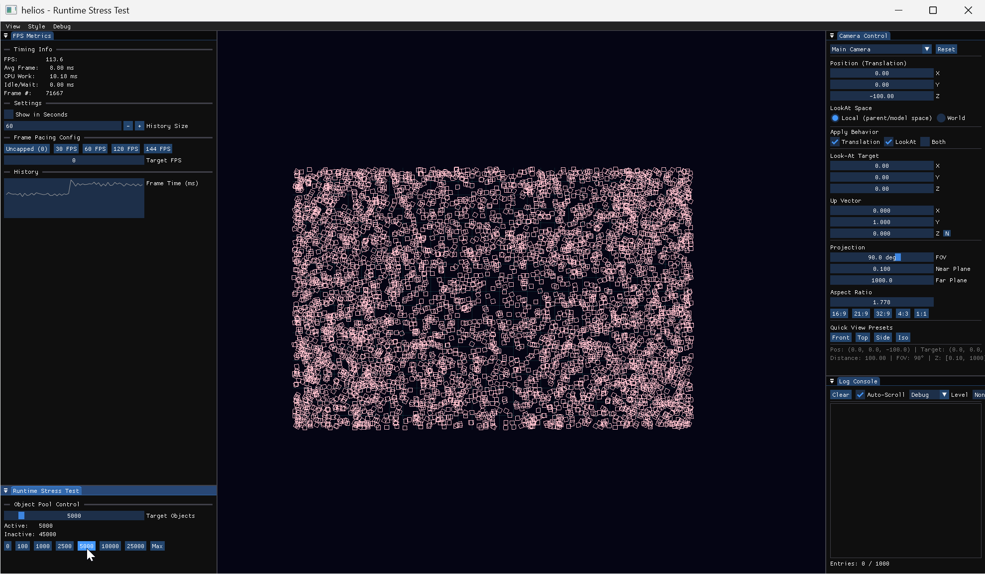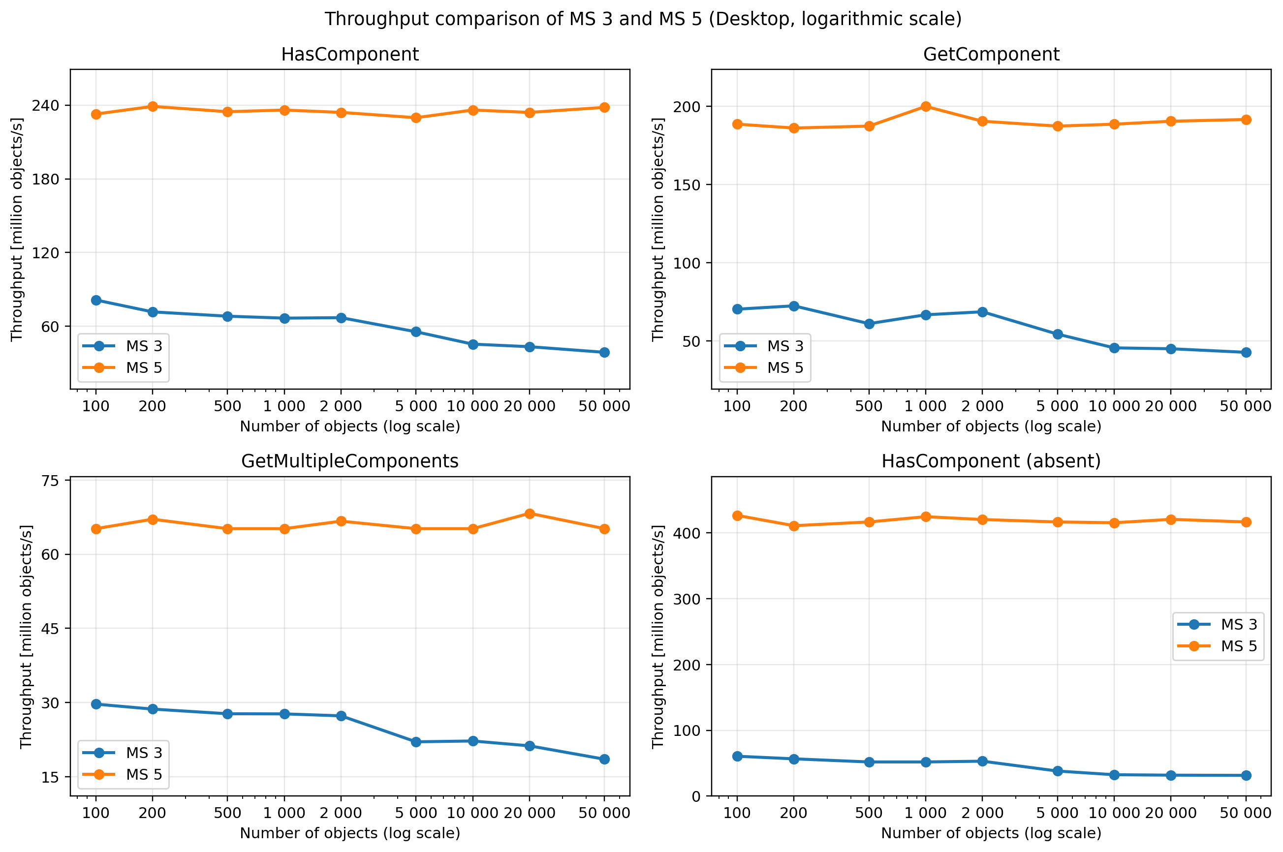 Despite unoptimized draw calls, the faster test system1 rendered 10,000 animated objects at a stable 60 FPS - far exceeding the original requirements. The data-oriented system also achieves better scaling under increasing load.